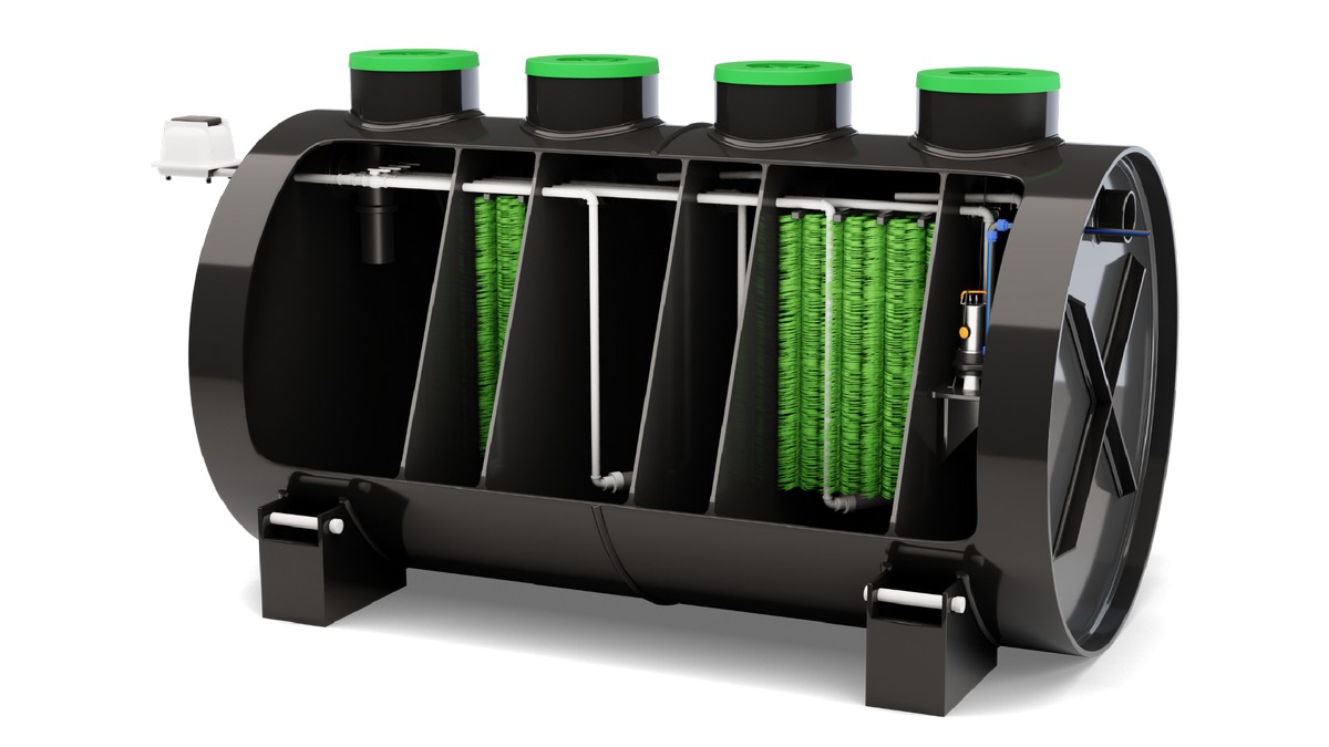 Очистное сооружение с глубокой 98% степенью очистки. Станция расчитана для использования 16-ти человек. Сброс можно делать как в кольца, так и на открытый грунт (ливневку).