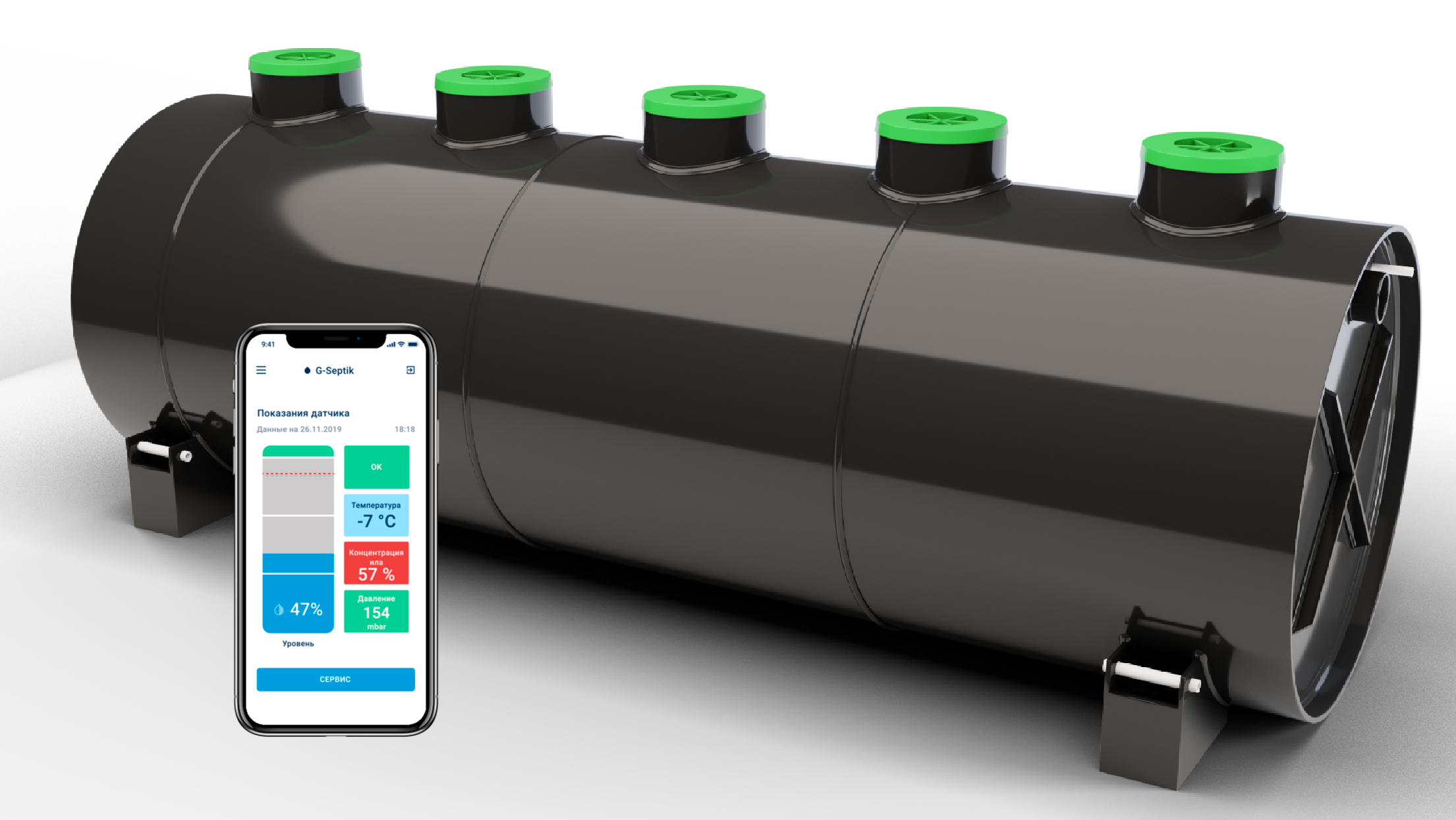 Очистное сооружение с глубокой 98% степенью очистки. Станция расчитана для использования 25-ти человек. Сброс можно делать как в кольца, так и на открытый грунт (ливневку). Абсолютная новинка, в спетик установлены датчики, позволяющие следить за ним (концетрация ила, давление в системе, критический уровень воды и многое другое) с помощью мобильного приложения из любой точки мира, а так же проводить необходимые настройки.